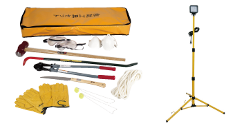 背負い式工具セット(参考写真) LED投光器(参考写真) 万一の災害時に必要となるもので、一般家庭では購入しにくいものを中心に防災用品を備蓄しています。