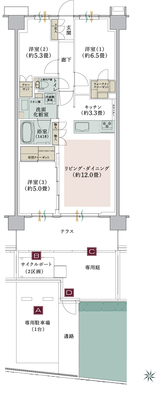 テラス&専用庭、専用駐車場、