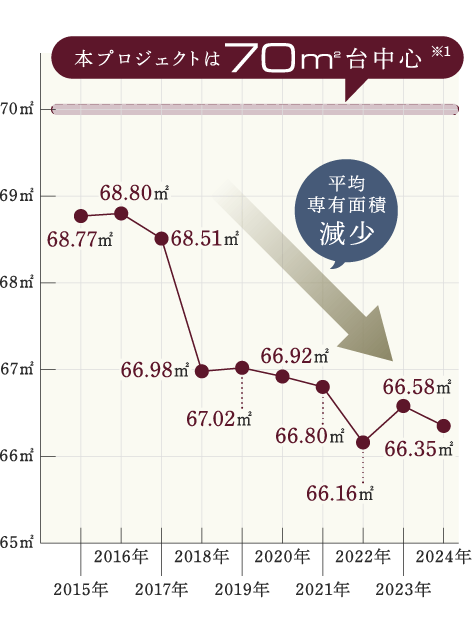 東京では新築マンションの平均面積は減少傾向。
