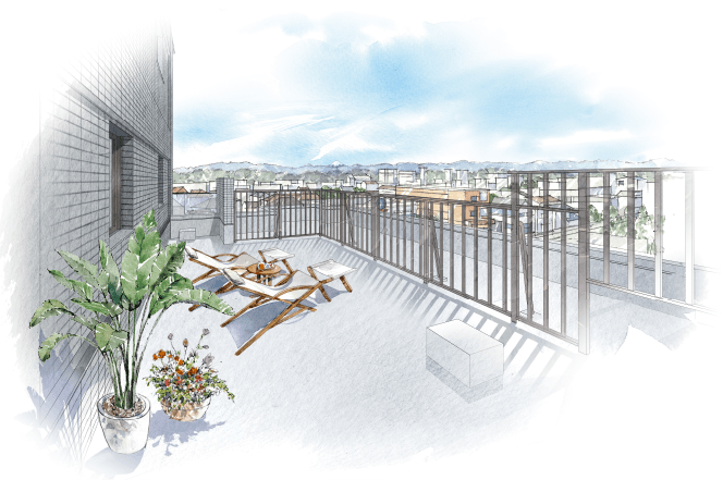 27㎡超の開放的なルーフバルコニー