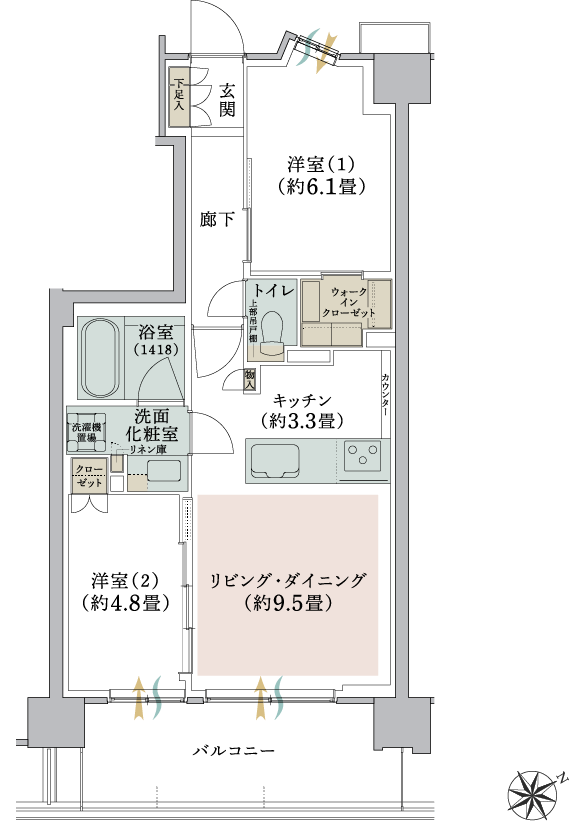 - 3面採光角住戸