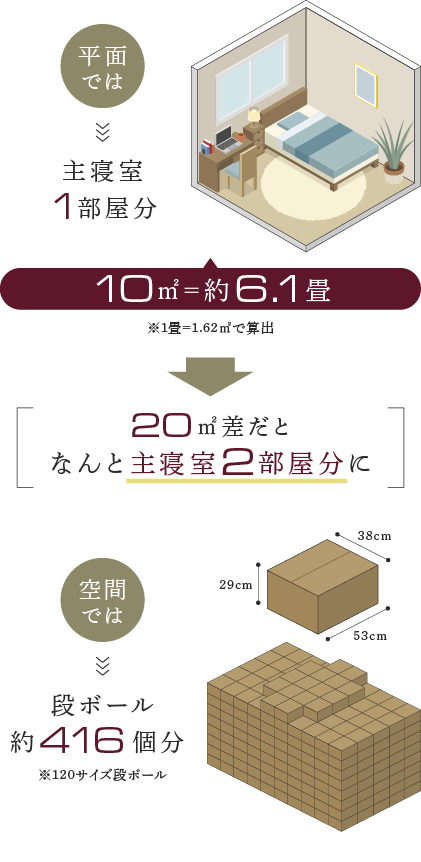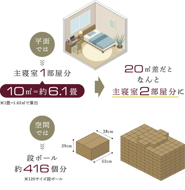 10㎡は主寝室1部屋分に相当。収納率もアップします。